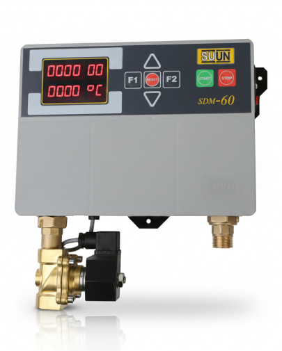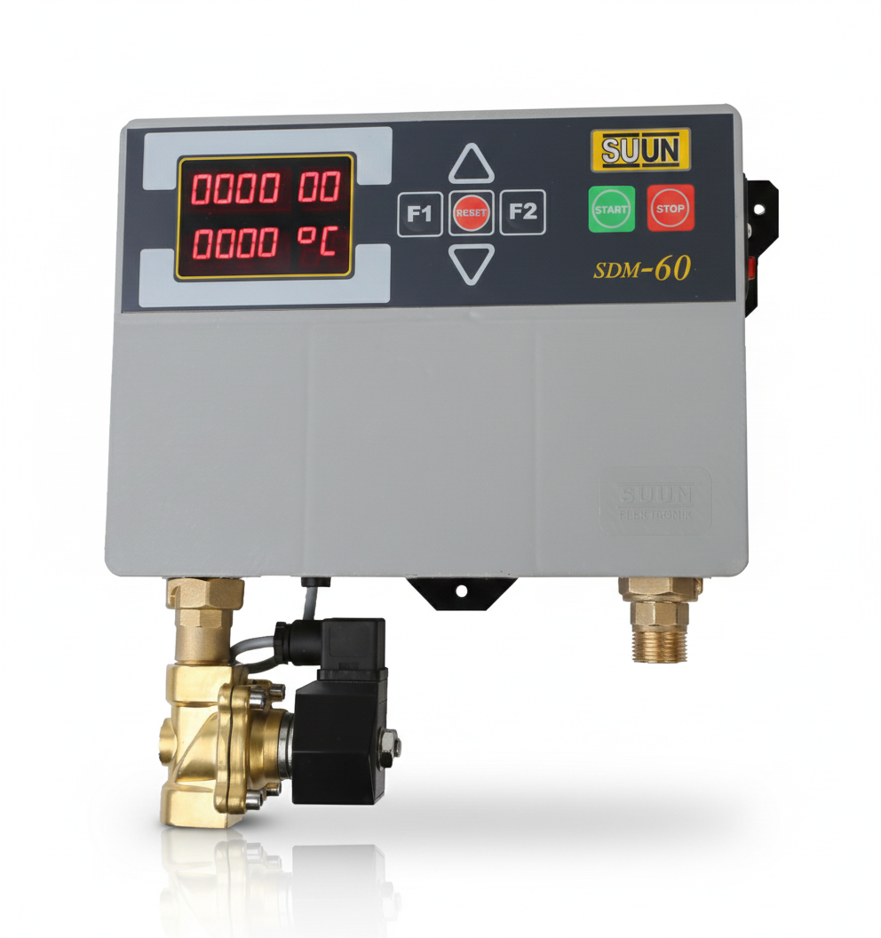SDM-60 Su Dozajlama Cihazı, Ürün oluşturma sürecinde kullanılacak olan suyu litre bazında otomatik olarak ayarlayan bir dozajlama cihazıdır. Cihaz ekranına girilen su miktarını otomatik olarak alır ve sistemi kapatır. İşlem esnasında alınan suyun derecesini gösterir. Ayrıca toplam alınan su miktarını hafızasına kaydederek daha sonra görme imkanı sunar.